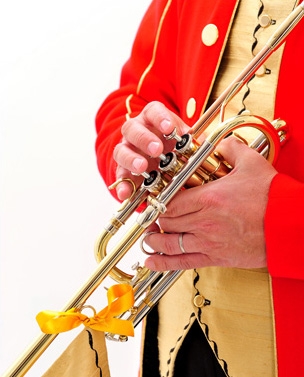 Our unique but traditional costumes and long belled herald trumpets with flags provide a stunning visual impact for your special event. We have our own selection of fanfares written for two, three or four trumpeters and are able to accommodate specific repertoire requests where appropriate through our special musical arrangement service. We have been heard playing fanfares for corporate events, special events in the presence of Royalty, Bishop’s Enthronements, graduation ceremonies, livery company dinners, product launches, opening new buildings, welcoming guests to parties, announcing speeches, for award ceremonies and in concerts.